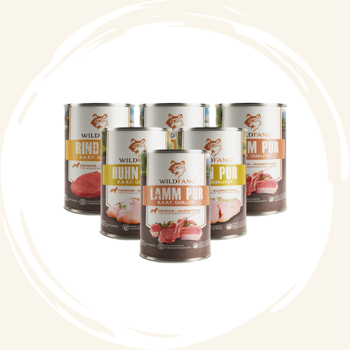 Our Premium wet food is ideal as a complete food for your dog and is characterized by its unique BARF quality in the varieties chicken, beef or lamb.