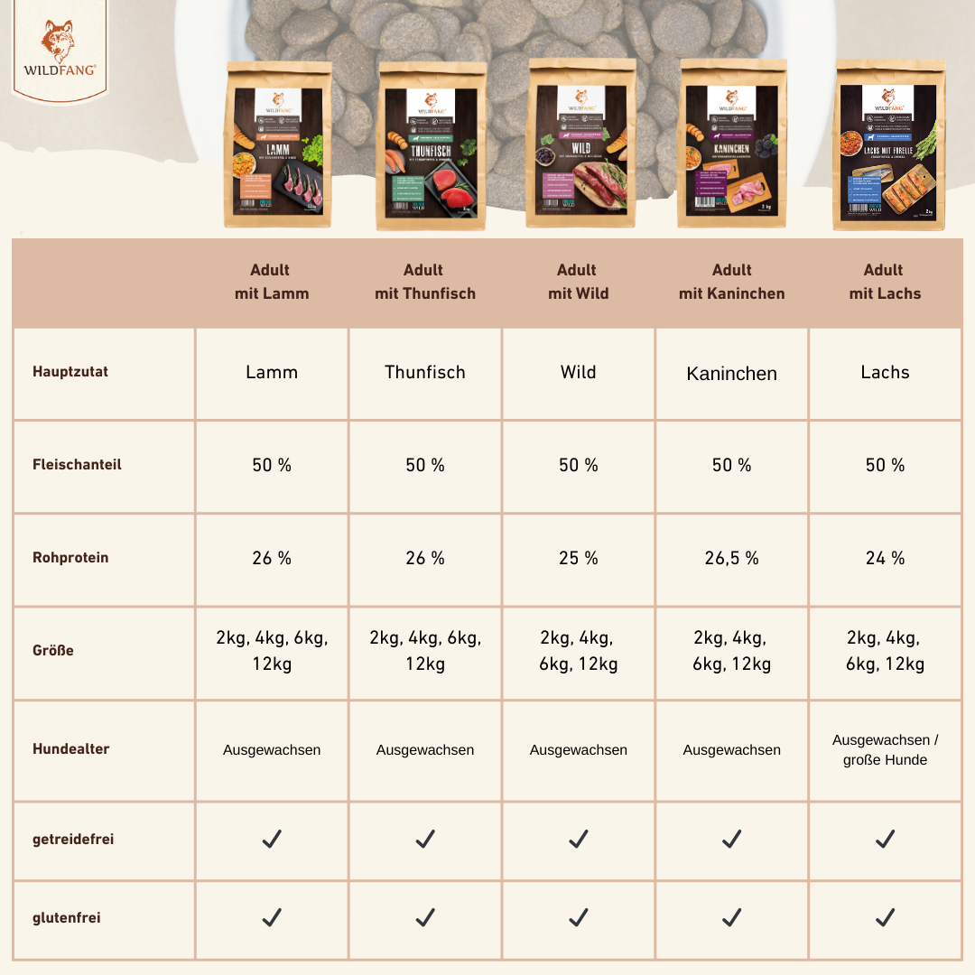 ✅ Wildfang® dry food meets - Crude protein content at 18-25%