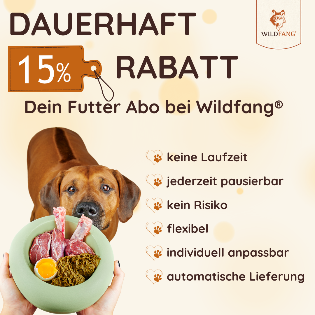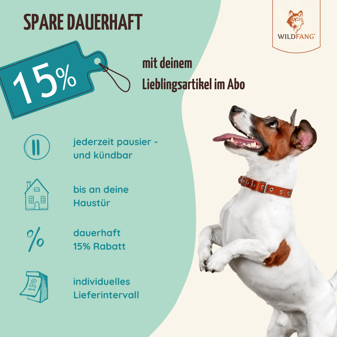 Mit dem Futter Abo sparst du dauerhaft 15% auf deine Lieblingssorte. Mit der wiederkehrenden Lieferung und Zahlung läuft alles automatisch und du hast Zeit für die wichtigen Dinge im Leben.