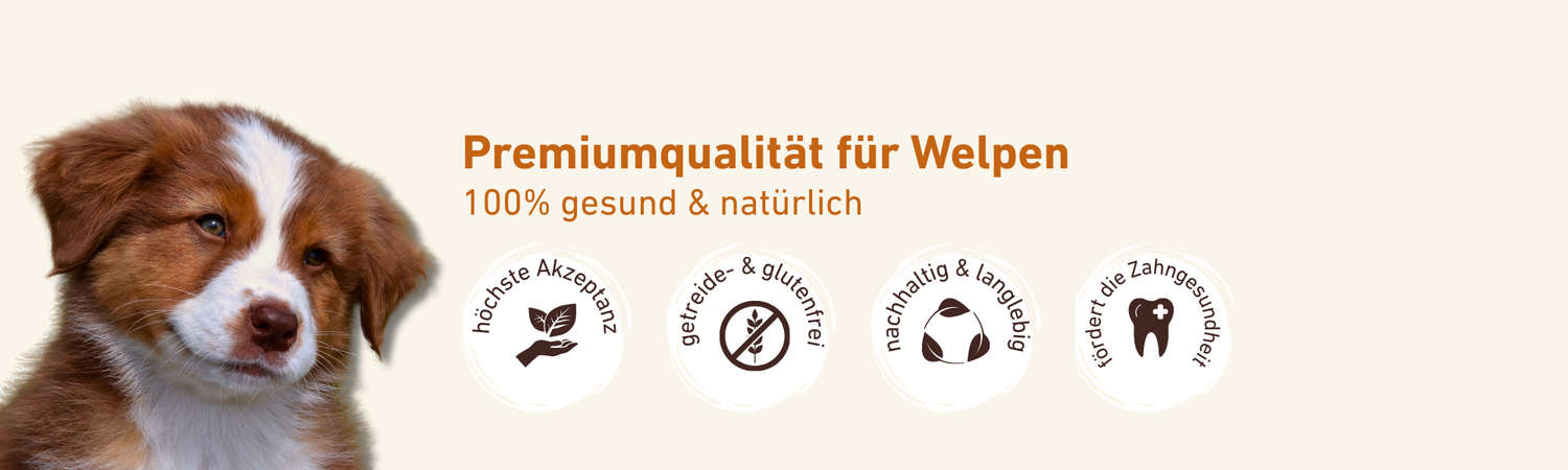 Podawaj zdrową żywność od samego początku! Aby mieć pewność, że Twój czworonożny przyjaciel otrzymuje odpowiednią ilość energii i właściwych składników odżywczych, zawsze zalecamy wybór specjalnej karmy dla szczeniąt. W naszym produkcie premium bez zbóż sucha karma jest wysokiej jakości białkiem, zawierającym odpowiednią ilość minerałów i pierwiastków śladowych. Ponadto karma ta jest bardziej kaloryczna niż karma dla psów dorosłych, co jest ważne, ponieważ szczenięta mogą rosnąć zdrowo i w rozsądnym tempie. Nasz mokra karma doskonale nadaje się jako karma dla szczeniąt, którą można doskonale uzupełnić o świeże lub gotowane owoce i warzywa.