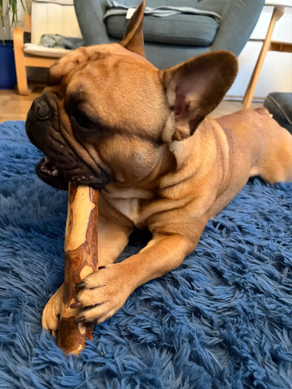 Unser 8 Monate alter Rüde ist sehr kaufreudig und fand das Olivenholz mega.